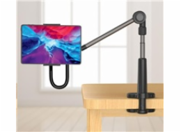 Stojan na smartfóny a tablety s držiakom na stôl, pre zariadenia 4" - 10,6" (125 - 190 mm), C-svorka, 360 stupňová rotácia, maximálne zaťaženie 1 kg, dlhé ohybné rameno vyrobené z hliníka, rozmery: 750x134x85mm, hmotnosť: 352 g