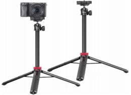 Stolní tripod pro kompaktní fotoaparáty, akční kamery, LCD monitory, webkamery, mikrofony či reproduktory, 3D kulová hlava pro nastavení v horizontální i vertikální poloze, 1/4” šroubový závit, nastavitelná výška 15 až 21 cm. Hliník. Stříbrná barva.
