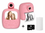 HELMER přenosná termo mini tiskárna s kamerou a fotoaparátem TP02/ 2.0" IPS/ 1200mAh/ USB-C/ Android/ iOS/ růžová