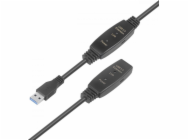 Konferenční kabel USB gen.3.0 15 m Aktivní prodlužovací kabel USB 3.0. umožňuje připojit notebook, stolní počítač, Windows tablet nebo TV s různým příslušenstvím vybaveným USB konektorem, např. myš, klávesnice, USB hub, pendrive, disk, fotoaparát nebo tiskárna. Prodlužovací kabel přenáší data ve standardu 3.0 rychlostí 5 Gbit/s (asi 10x rychlejší než USB 2.0) Kabel je zpětně kompatibilní a funguje i se zařízeními USB 2.0. Kabel je vybaven dvoučipovým přenosovým zesilovačem pro zajištění nepřerušovaného přenosu dat. Kabelové konektory byly zesíleny, aby se zabránilo jejich odlomení při častém připojování a odpojování. Je vyroben ze spolehlivých materiálů Doživotní záruka Délka kabelu: 15 Typ: Prodlužovací kabel Použití: Počítačové Konektory #1: Zásuvka USB typu A Konektory #2: Zásuvka USB typu A Standardní: USB 3.0/USB 3.1 gen 1 Barva: Černá - pracujeme na zlepšení popisu, prosíme o trpělivost
