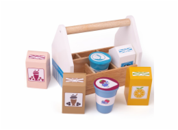 Rozměry kufříku: 19x1,5x15 cm Rozměr jogurtu: 5,5 cm, O 5,5 cm Věk: 3+ Materiál: dřevo