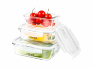 Praktická a spolehlivá sada dóz pro skladování a přenášení potravin. Vyrobena z odolného skla a plastu s kvalitním silikonovým těsněním víčka – vzduchotěsné a vodotěsné. Ventil pro odvětrávání a odvlhčování potravin. Potraviny zůstávají déle čerstvé, udržují si své aroma, při manipulaci nevytékají. Vhodné do ledničky, mrazničky, mikrovlnné trouby a do myčky. Odolné od-20 °C až do 110 °C. Dózy bez víčka jsou stohovatelné.