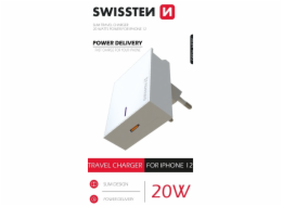 SWISSTEN GaN 1× USB-C PD 20 W + kabel USB-C/USB-C; Univerzální napájecí adaptér s výkonem až 20 W . Pro nabíjení zařízení je k dispozici konektor USB-C . Adaptér podporuje protokol rychlého nabíjení Power Delivery . Použitá GaN technologie snižuje tvo...