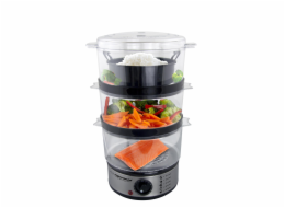 Parní hrnec pro zdravé vaření potravin bez zničení vitamínů. • Ovládání přítoku vody-rychlejší generace páry • 3 nádoby parního hrnce, 1 víko, 1 miska na rýži • Nerezová základna