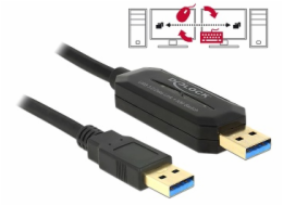 USB3.0 propojovací A-A kabel, 9pin - 9pin 2m, CU, AWG28, stíněný, M/M, UL, black - USB 3.0 typ A male - USB 3.0 typ A male - Přenosová rychlost: Super-speed 5Gbps - Zalévané konektory - 9-žilový kabel, AWG28 - Barva: černá - Délka: 2m
