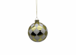 Ozdoba čirá baňka s bílou mřížkou 8 cm