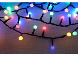 Vánoční světelný řetěz, 100 LED světýlek v provedení malých kuliček. Barva světel vícebarevné, délka osvětleného kabelu 10 m (vystačí přibližně na stromek vysoký 1,3 m). 8 funkcí režimu svícení, vhodné pro interiéry a exteriéry.