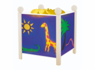 The Magic Lantern is a traditional night light inspired by a very old Japanese tradition. It calms children so that they fall asleep easily. When switched on, the bulb develops rising heat. This makes the illustrated cylinder rotate gently as if by magic.