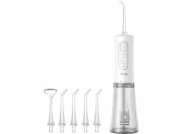 cestovní zubní sprcha • 3 stupně intenzity tlaku a pulzování • 6 režimů čištění • 2 druhy proudu (lineární a rotační) • technologie Oxyjet (mikrobublinky) • integrovaná nádržka 140 ml • nabíjecí stojánek