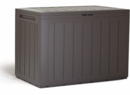 Zahradní box s objemem 270 l pro uložení zahradnického náčiní, nářadí a hraček, víko unese až 150 kg váhy, proto ho využijete i jako místo k sezení, jednoduchá a rychlá montáž, odolnost, imitace dřeva, barva hnědá.