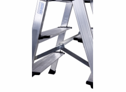 Krause Dopplo Stříbrný dvojitý žebřík Šířka: 450 mm Složená výška: 95 cm Výška (max.): 85 cm Složená hloubka: 16 cm Hmotnost: 3,5 kg Materiál: Hliník Barva: Stříbrná Protiskluzová plocha: Ano Počet st